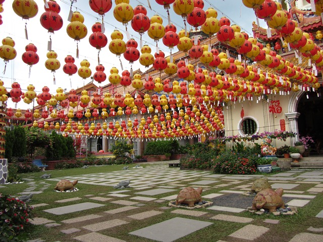 Tolles Essen in Hawker Stalls, der bunte und schillernde buddhistische Tempel Ke Lok Si und ein Kochkurs im Spice Garden erwartet uns in Penang.